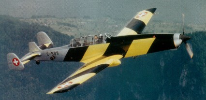The cost-effectiveness of the program exceeded all expectations, although it was not until 1971 that the Swiss mili¬tary ordered the EFW at Emmen to begin conversion work on the next five exam¬ples of what was by then designated the C-3605. A budget of 30 million Swiss francs was delegated to pay for a total of 23 converted aircraft – an order completed by January 1973. At the same time, the target tugs also underwent a change in color scheme to identify them to the anti¬aircraft crews—from red striping to broad diagonal black and yellow bands over the wings, horizontal stabilizers and forward part of the fuselage.