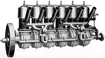 The 1910 Elbridge Engine Co Featherweight 6 was a six-cylinder inline, water-cooled aero engine producing 60-90hp from 453.6ci. The dry weight was 250 lb.