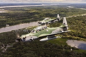 The request for a light attack aircraft was part of the Brazilian government’s Amazon Surveillance System project. This aircraft would fly with the R-99A and R-99B aircraft then in service and be used to intercept illegal aircraft flights and patrol Brazil’s borders. The ALX project was then created by the Brazilian Air Force, which was also in need of a military trainer to replace the Embraer EMB 326GB Xavante. The new aircraft was to be suited to the Amazon region (high temperature, moisture, and precipitation; low threat). The ALX was then specified as a turboprop engine aircraft with a long range and autonomy, able to operate night and day, in any meteorological conditions, and able to land on short airfields lacking infrastructure.