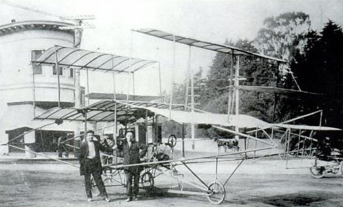 A design of father and son English who built this design – variously named helicopter, helicopter-monoplane or heliocopter in contemporary reports. Construction took place in guarded secrecy in a shed in Fruitville near Oakland from 1910.
