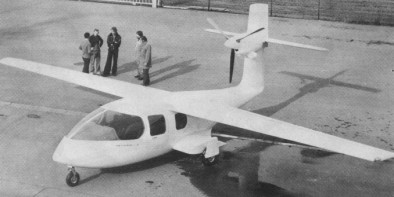 An eight place, high wing, fiberglass am¬phibious single with a 400 hp Allison 250 turbo¬prop mounted near the top of the vertical stabilizer. Intended to be amphibious, the main gear retracts into sponsons that stabilise the hull on water.