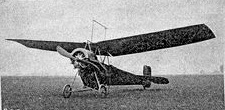 The 1907 Esnault-Pelterie Rep 1 tractor monoplane, with no rudder initially, but flew up to 2000′ It was designed and built by Robert Esnault-Pelterie in France