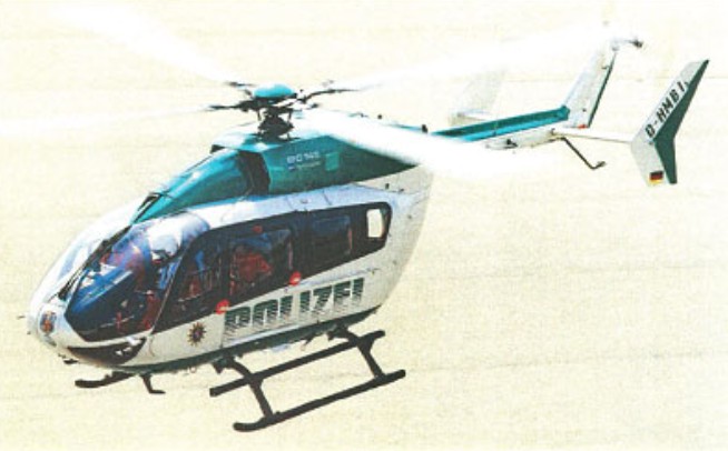 The first flight of German aircraft (D-HMBK) (unannounced) was on 12 June 1999, and the first flight of Japanese prototype was on 15 March 2000. A third prototype (D-HMBL) joined the programme on 14 April 2000, and fourth (D-HMBM) on 27 October 2000. Kawasaki builds tail section; Eurocopter responsible for forward section. Certification by LBA received 12 December 2000; commercial launch at Paris Air Show, June 2001; FAA certification awarded 14 February 2002, coincident with type’s formal “introduction” at HeliExpo, Orlando, Florida.