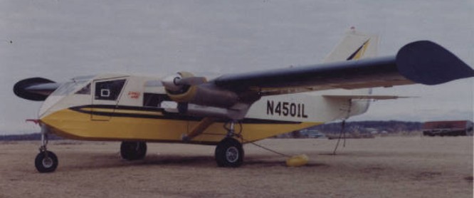 By 1963, Carl Mortenson had created a high wing strut-braced, twin engine plane with a fabric over metal tubing fuselage and a metal wing. At that time it was a fixed gear tricycle design.
