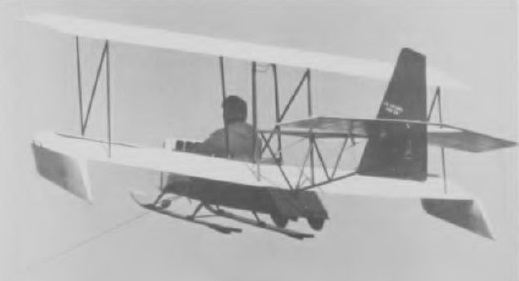 Balance floats – basically just plate-type fairings – are carried at the extremities of the lower wing tips. The pilot sits in an open cockpit in the unstopped watertight wooden hull and, instead of a conventional planing bottom, take-offs are made on a pair of standard jumper skis, 6 ft in length, attached to small wire-braced struts below the hull. The latter is of spruce with a mahogany plywood bow, bottom skins and sides, the plywood being glass fibre covered below the waterline. There is a towing hook on the nose. The wire-braced tail unit is of spruce with plywood and fabric covering, and is carried on a boom of welded steel tube or wire-braced wooden construction. The rudder is conventional and the tailplane an all-moving one-piece surface.