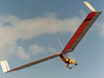 A 1977 hang glider, the EF5 is an Australian rigid designed by Ewen Fagan. Very similar to Manta Fledging, it was sold as a plan and kit by its designer. It was later (early 80’s) sold by Skyland Kites, Qld, Australia. It was sold as a kind of kit, you could buy the machined parts, the cables and the sewn sails. The aluminum tubes had to be purchased on site.