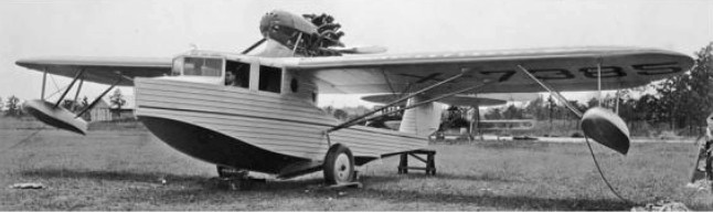 The Fairchild FB-3 (Flying Boat number 3) was an all-metal flying boat designed by Arthur Stelb and developed by the new Fairchild Metal Boat Division of the Fairchild Aircraft Corporation. The prototype was built at Fairchild’s Farmingdale, Long Island facility. The FB-3 was an amphibious high-wing strut-braced monoplane with retractable landing gear, powered by a high pylon mounted pusher configuration radial engine. The two-step hull provided floatation with two outboard floats for stability. The wings used metal spars and ribs with fabric covering. The interior was well finished for its time.