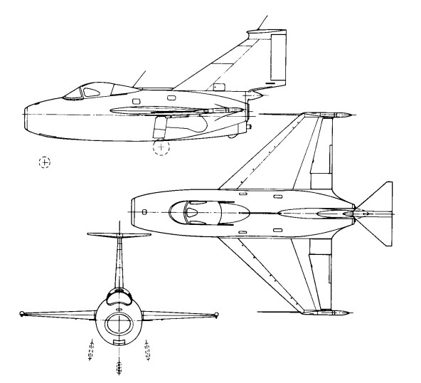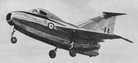 The Fairey FD.1 was produced as a prototype for the investigation of the handling characteristics of a planned vertical take-off fighter (using an inclined ramp). For that reason had provision for four small rocket engines mounted round the efflux of the Derwent engine. These rocket engines were never fitted, and with its very small wing and high wing loading, the F.D.1 required a very long run to take off.and first flew on 12 March 1951, but then adapted for research into the flying qualities of delta-winged aircraft. Powered with a 3600lb (1633-kg) thrust Derwent 8 turbojet. The type had poor handling qualities and was soon abandoned.