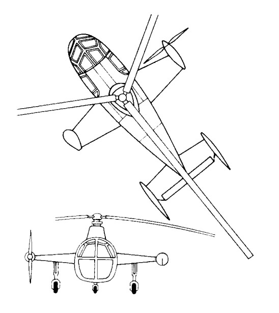 The engine power could be transmitted in variable ratios to a three-blade rotor just over 15m in diameter and to the anti-torque propeller on the starboard tip of the stub wing, the Gyrodyne behaved like a helicopter, but the same propeller also provided the necessary thrust for fast flight, when the aircraft looked almost like an autogyro.