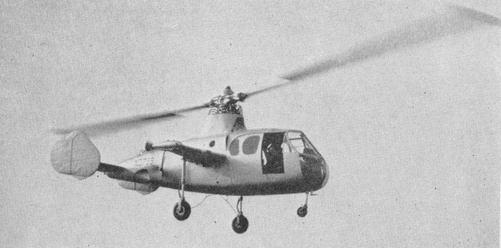 Because of the need to keep the gross weight down with the limited power available, the Jet Gyrodyne normally carried only sufficient fuel for 15 minutes or so of safe tip-jet burning endurance. Extra tanks were occasionally carried under the wings to provide 30 minutes’ endurance, but, as already noted, there was no particular danger in fuel exhaustion for an aircraft which could make powerless autorotative landings from a best indicated gliding speed of only 72km/h. The high inertia of the big rotor allowed for a few moments of hovering before touch-down.