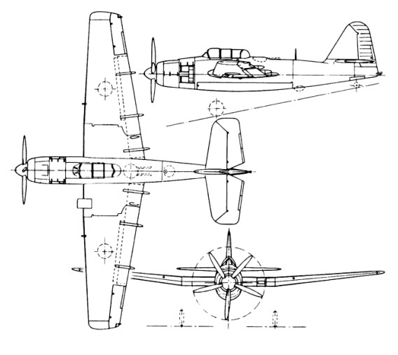 The Spearfish was a cantilever, mid-wing monoplane, with an all-metal, monocoque fuselage. The centre wing section was built integral with the fuselage and the outer wing panels could be hydraulically folded for carrier operations. A distinguishing feature of the wing was the large Fairey-Youngman flaps that spanned 73.5% of the wing’s trailing edge. The Spearfish had an outward-retracting conventional landing gear with a tailwheel. The wings housed a pair of 183-imperial-gallon (830 l; 220 US gal) fuel tanks, plus a 43-imperial-gallon (200 l; 52 US gal) tank in the leading edge of the starboard wing for a total of 409 imperial gallons (1,860 l; 491 US gal) of fuel. The two-man tandem cockpit had a hydraulically operated canopy.