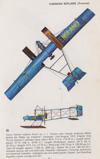 In this form it became the first aeroplane, after the Wright Flyer No. 2, 1904, to remain airborne for over a minute and turn a complete circle. The latter flight, made on 13th January, 1908, won Farman the Deutsch Archdeacon prize of 50,000 francs for completing the first official circle of one kilometre in diameter.