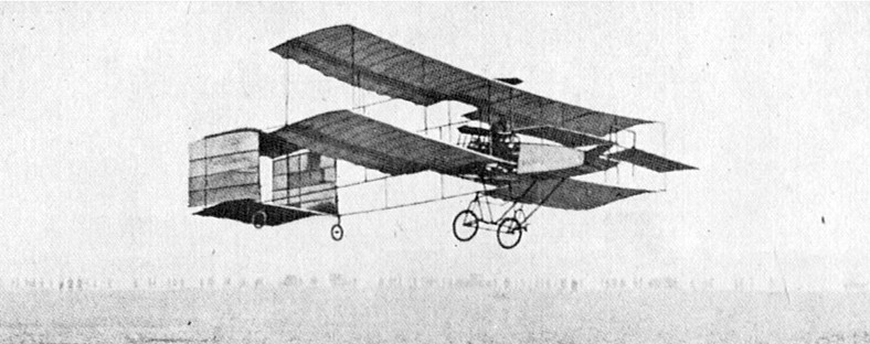 Two identical pusher biplane machines, with Antoinette engines, had been built by the Voisin brothers for two early aviation pioneers, one for Léon Delagrange in March 1907, and the second for his friend and rival the Anglo-French pioneer Henry Farman (1874-1958) in October 1907. The latter biplane became known as the Voisin-Farman I and Farman made a number of modifications of his own during the autumn of that year. Thus, the Voisin-Farman 1 became the Voisin-Farman 1bis; it was flown by Farman on 13 January 1908 to win the Archdeacon’s Grand Prix d’Aviation prize for making the successful first one-kilometer closed-circuit flight.