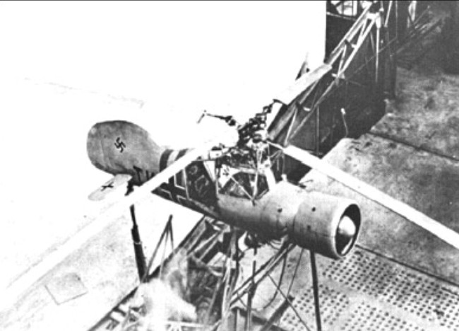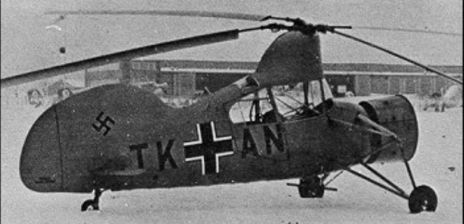 Six Fl 265’s were ordered in 1938 with a view to developing a machine suitable for shipboard reconnaissance and anti-submarine patrol for the German Navy. They were to be powered by a 7-cylinder air-cooled engine to drive its two intermeshing two-bladed rotors and with an inertia damping system to reduce the shake of the control stick. The six prototypes were built (Werk-Nr. 1579 -1584), one of which (TK+AN) was tested in the large wind tunnel at Chalais Meudon (Paris) in the summer of 1940.