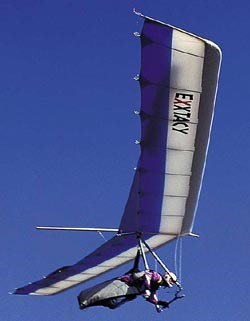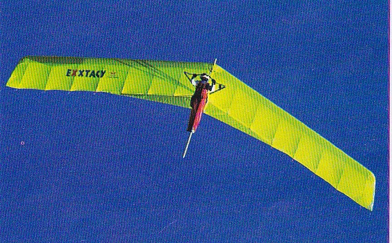 A rigid wing light hang glider from 1996. Very safe to fly, sink rate below 0.8m/s, glide ratio above 16, speed range from 32 to more than 110 km/h.