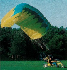 The prototype was shown at Oshkosh 1997. On the prototype the pedals are loosened from the bicycle crank and become the parachute foot controls.