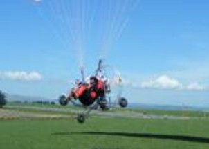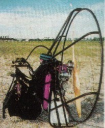 The Mach 1 paratrike uses a modified paraglider wing with the German-manufactured Solo 210cc two-stroke petrol engine. This has electronic ignition, electric starter, in-flight battery charging and its Walbro carburettor and tuned exhaust gives an extra 5 kg of thrust. Power to the 1.22-metre diameter wooden propeller is via a 2.5:1 Polyvee Belt Drive reduction unit, giving 60 kg of thrust at 6,300 rpm. Fuel capacity has been increased from the standard 8.5 to 10 litres, giving a 5-hour endurance at approximately 27 knots.