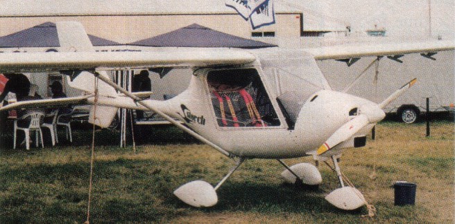 Storch is a composite two seat ultralight, three-axis aircraft. Power can be from the Rotax 503 to a Rotax 912 or Jabiru. The 912 version has carbonfibre wings to keep it inside the weight limit.