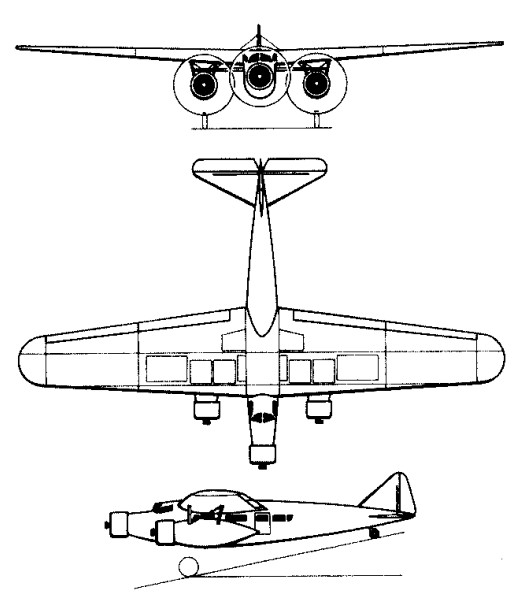 Power was provided by three Wright Cyclone R-1820-F radial engines, one mounted in the nose and the other two carried on strut assemblies under the wings, for a cruising speed of 270 kph. The main landing gear units retracted rearwards into the engine nacelles.