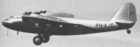 The prototype (PH-AJR) flew in early 1935 and was followed by two production machines, accommodating 22 passengers. All three were delivered to KLM, the prototype in March and the other two in May 1935. One aircraft crashed on 14 July 1935, but the other two operated European routes until they were sold in the UK, PH-AJR becoming G-AFXR in August 1939 on joining British American Air Services, and PH-AJP being re-registered G-AFZP in the following month when it was acquired by Scottish Aviation. Impressed for RAF service as HM159 and HM160 in October 1941, the two aircraft were used for transport and crew training. HM159 caught fire in the air and was lost in the Highlands, but HM160 was returned to Scottish Aviation post-war under its previous civil registration. It flew between Prestwick and Belfast for a time before being grounded finally at the end of 1947.