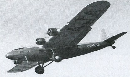 The sole Fokker F.XXXVI made its first flight on 22 June 1934, flown by Fokker’s test pilot Emil Meinecke. Largest of the Fokker transports, it was a high-wing cantilever monoplane with fixed landing gear and powered by four 559kW Wright Cyclone radial engines mounted forward of the leading edge. Of typical Fokker construction, the F.XXXVI provided accommodation for a crew of four, and 32 passengers in four eight-seat cabins. As an alternative 16 passengers could be carried in sleeping accommodation. Operated on European routes by KLM from March 1935, it was sold in 1939 to Scottish Aviation of Prestwick and was flown from there as a crew and navigational trainer until scrapped in 1940.