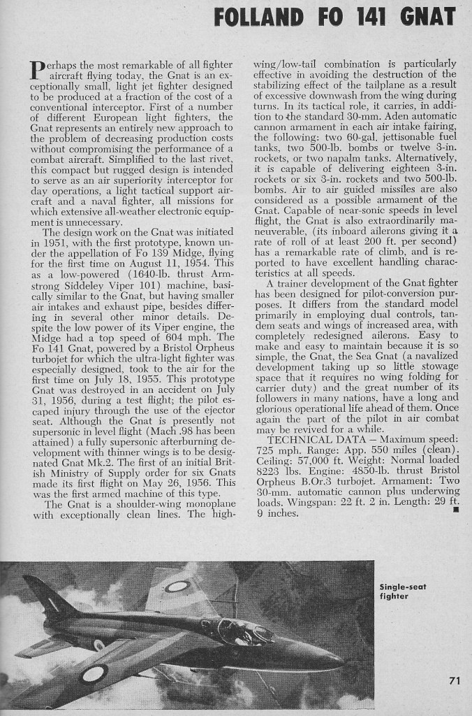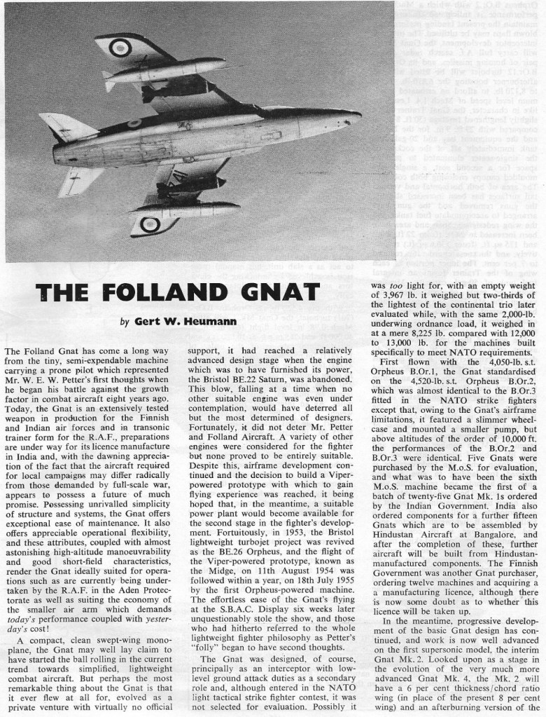Folland Fo 141 Gnat Article 04/01/202520/06/2025Terry Back to Folland Fo 141 Gnat 1957 Share this: Share on X (Opens in new window) X Share on Facebook (Opens in new window) Facebook Like Loading... Related