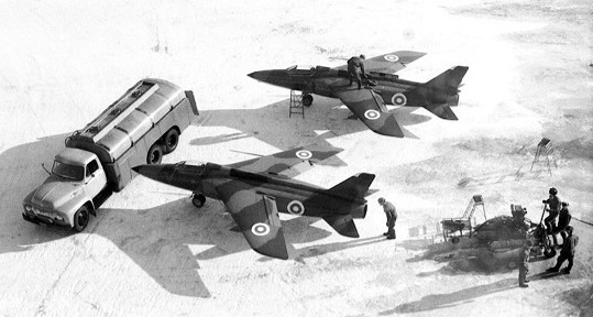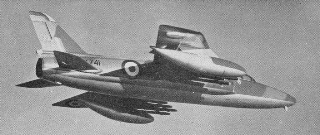 Six development aircraft were ordered by the Ministry of Supply in August 1955, the first flying on 26 May 1956, and these were used for a variety of trials at Boscombe Down, including firing of the 30mm ADEN cannon, one of which was fitted in the lip of each intake. Evaluation in the ground-attack role was undertaken in Aden, in competition with a modified Hawker Hunter.