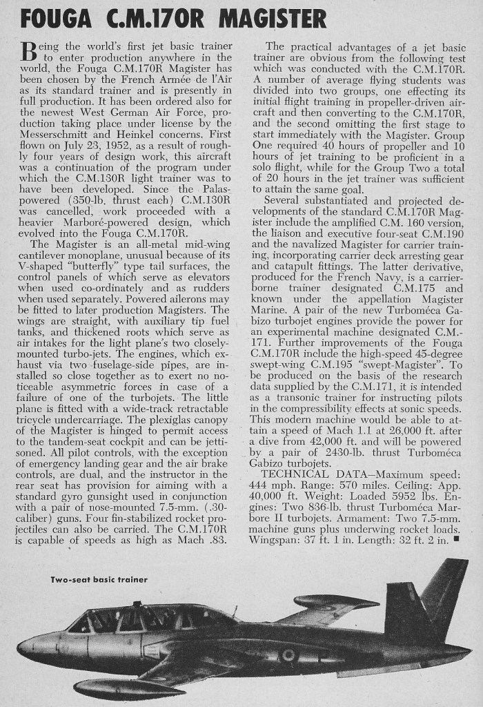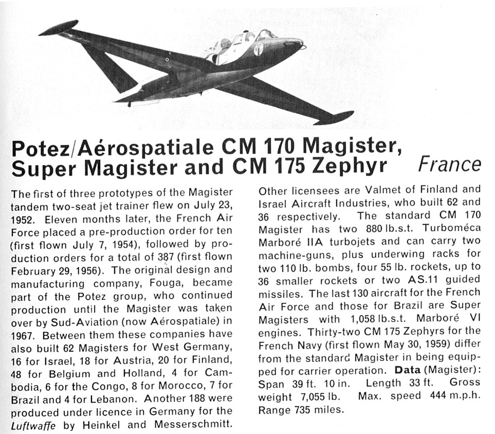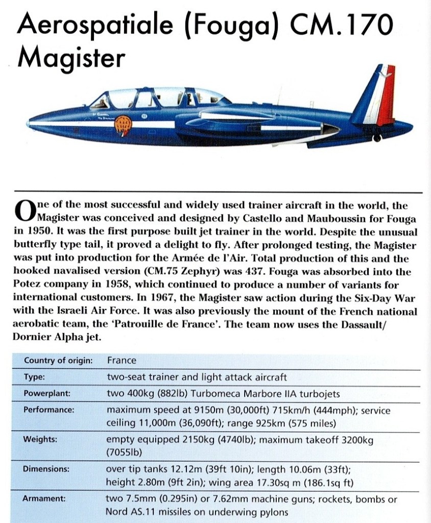 Fouga CM.170 Magister Article 05/01/202520/08/2025Terry Back to Fouga CM.170 Magister 1957 Share this: Share on X (Opens in new window) X Share on Facebook (Opens in new window) Facebook Like Loading... Related
