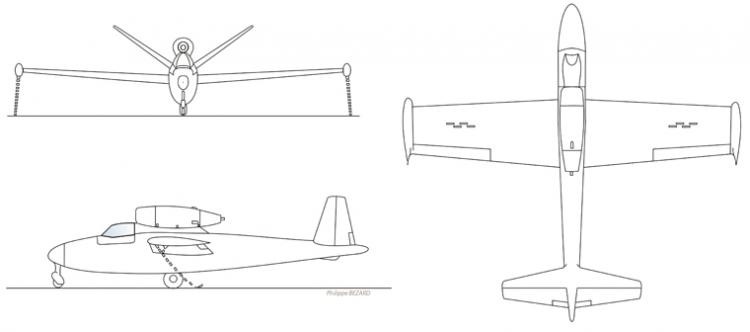 It fuselage is of shell structure with an oval section. The Turbomeca Palas is attached at three points above the fuselage. The fuel used is Regular Gasoline contained in two 64 liters tanks. Oil is contained in an annular three liter tank, located in front of the engine. Ignition is provided by a six volt battery and two coils. The starting is effected by means of compressed air.