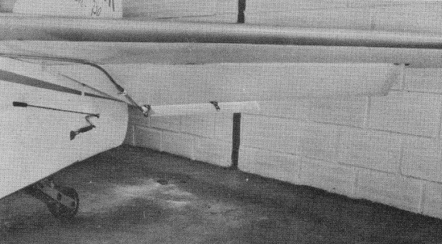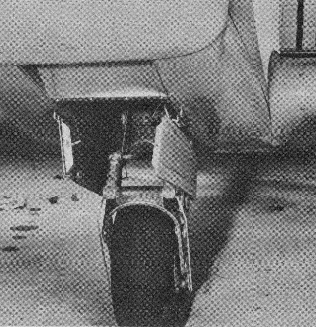 The monowheel has rubber chord shock absorption and retracts forward manually into a glassfibre cowling; it has a manually-operated brake and is supplemented by a hoop-shaped balancer skid of 6mm steel wire under each wing. The mono-wheel gear gives no problems in maneuvering with ground turning radius about half the wingspan. There is also a steerable tailwheel. Retracting the wheel is by pulling the lever full back and up-lock is automatic.