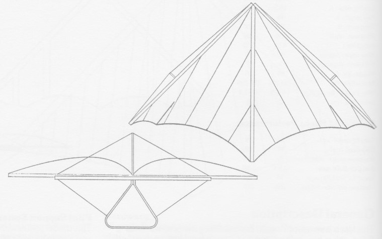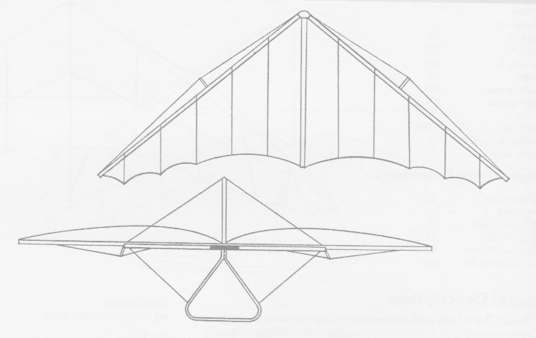 The Sierra III was a high performance glider with a deep scalloped centre section cambered keel. It was for advanced pilots only because of its very fast handling and long glide ratio. This model has an adjustable centre gravity plate, skid plate, 5 ft control bar, and a “shur-lok” quick release spreader bar that allows for speedy folding of the wings without tools.