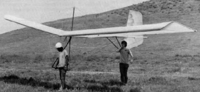 The glider was first conceived in late summer/early fall of 1974. An important design goal was that a Quicksilver’s basic structure (everything but the sail and wing ribs) could be converted into a Pacific I with very few modifications. A Quicksilver would need a better airfoil for more lift and better streamlining. More lift was provided by a modified Liebck section from the Icarus V. A rear spar was put at the trailing edge and eliminate the use of any secondary structures. The 1in trailing edge could be put in latter with foam, paper, or whatever.