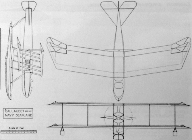 In an effort to produce an aircraft with the best possible forward visibility for the observer, Gallaudet developed the D-2 into the D-4, which placed the observer in the nose, followed by the pilot, with the propeller attached to a ring that circled the fuselage behind the wings. The four blades spun around the fuselage just behind the pilot.