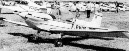 M. Albert Gatard’s Poussin (chick) has excellent aerobatic qualities with 20 seconds of inverted flying possible. Several are under construction around the world, including one in Zaire. The control system uses a unique, variable-incidence lifting tailplane of large area. The pilot lowers full-span slotted aileron/flaps and adjusts the tailplane to maintain pitching equilibrium. Aircraft is single-seat wooden low-winger, fixed gear.