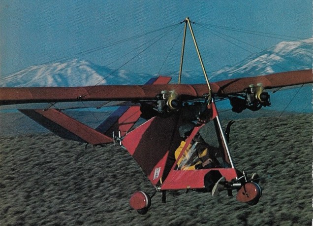 The Hummingbird Prospector had the wing braced from above by kingpost and cables, from below by cables. Aluminium tube framework, without pod (total enclosure optional). The Hummingbird Prospector was the flagship of the Gemini range in that it came complete and test flown from the factory, unlike the Hummingbird 103 and Hummingbird Super 103. It was an older design, easily distinguished from the 103s by its retention of kingpost and cable bracing. The Prospector was sold with two Solo 335 engines. However, there were plenty of Prospectors around with Limbach 275 cc engines. Latest power units for the Hummingbird Prospector were reduction drive Solos.
