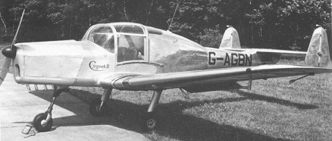 This 1936 side by side two seat training and club aircraft was an attempt at a more robust and easily made machine than those of longeron, plywood and fabric construction. It was the first British light aeroplane to have both metal skinned wings and fuselage. The first version had a single fin and rudder and a tailwheel landing gear. The later Cygnets had twin fins and a tricycle landing gear making it easier to fly.