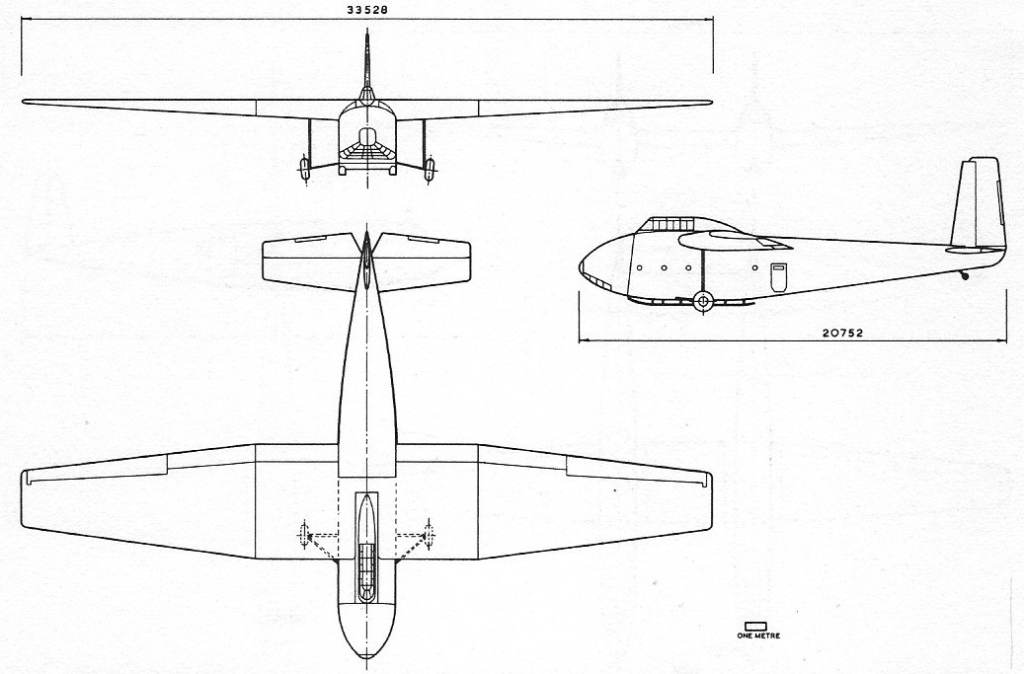 A hinged nose section was fitted for loading. The undercarriage was jettisonable mainwheels and two steel sprung main skids. Trailing edge flaps were fitted.