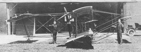 No drawings have been traced, but many details can he found in contemporary journals. It was a biplane with a span of 30ft (9m) and a length of 30ft. Wing area was 426sq ft (39m2), with a chord of 5ft 6in (1.67m), plus 15in (38cm) extra chord at the trailing edge of the warping wing tips. The gap was 5ft (1.5m). Like the Farman, it had a forward elevator and a fixed horizontal tailplane (to the trailing edge of which a small auxiliary elevator was later added). The wing section was ‘single surfaced’, that is to say the ribs were like narrow hockey sticks with top and bottom curves parallel.