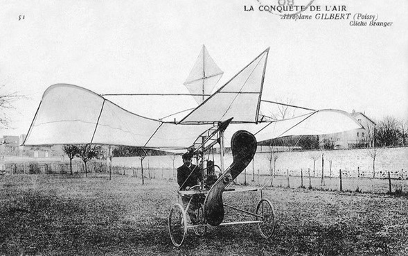 France 1906. Eugene Gilbert (19 July 1889-1918) became interested in flight in his teens and attempted to build his own version of a flying machine in 1906. The effort appears to have been unsuccessful.