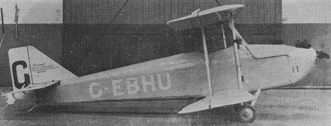 The Gloster G.14 Gannet, G EBHU, was registered on August 15, 1923 to the Gloucestershire Aircraft Co. Ltd. it was designed by H. P. Folland and built for the 1923 Lympne Trials, from which it retired when its 750cc Carden two stroke engine had cooling troubles.
