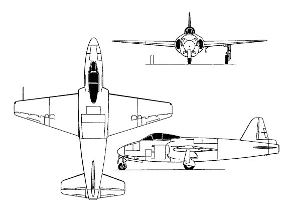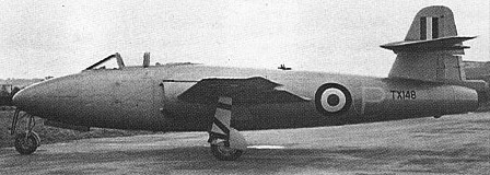 A second prototype was completed and flown on 9 March 1948, this being powered by a 2268kg Nene 2 turbojet and having provision for four 20mm Hispano cannon. After initial flight testing the tail assembly was redesigned to improve handling. A third prototype was flown in 1949, and a fourth was nearing completion when it was decided that the single-engined fighter lacked the development potential of the twin-engined Meteor, further work being discontinued.
