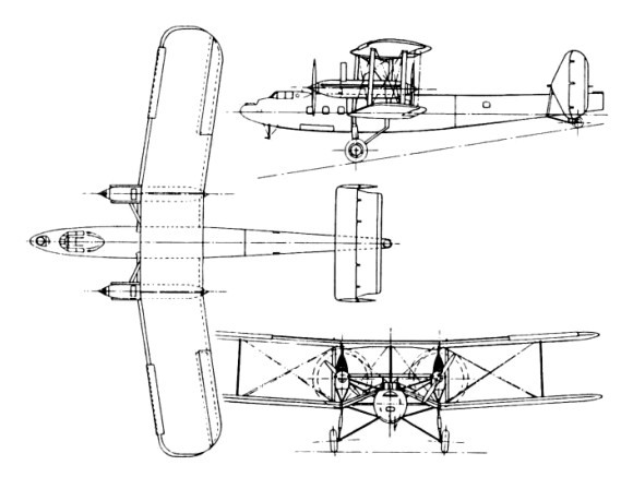 The fuselage was oval in cross section and smoothly metal skinned. The cockpit was enclosed, but there were open gunners’ positions at nose and tail. Like the cockpit, the long main cabin was heated and soundproofed. There was a large hatch in the floor for heavy loads with an integral hoist mounted above it, plus a smaller roof hatch through which loads could be lowered by crane. The biplane tail unit had conventional fabric covered endplate fins and rudders, but the tailplanes were sesquiplane type. The upper tailplane and elevator was strut mounted above the fuselage and the much narrower chord lower part fixed to the lower fuselage.