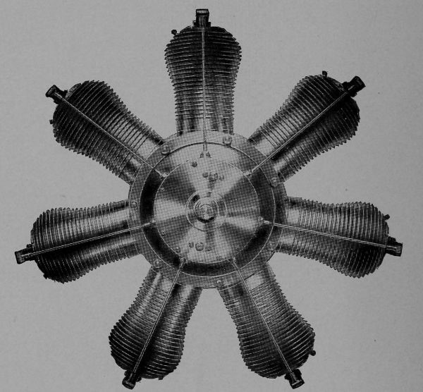 Seven-cylinder, single-row rotary engine.