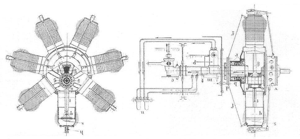 Type: 7-cylinder, single-row, rotary engine