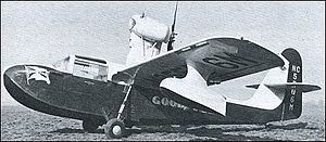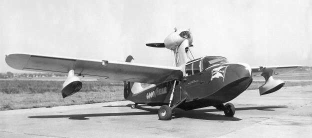 The Goodyear Aircraft Corporation began to design a small light amphibian before the end of the Second World War. The prototype designated GA-1 first flew in September 1944. It was a cantilever high-wing monoplane with underwing stabilizing floats. The GA-1 had an all-metal fabric-covered wing, an all-metal single-step hull, and a cruciform tail unit. It had a retractable tail-wheel, accommodation for two, and a pylon-mounted piston engine with a pusher propeller.