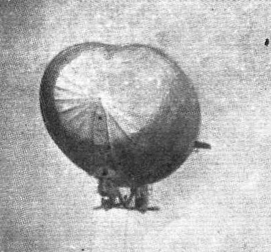 Along the belly of the envelope is an enclosed aluminium alloy keel, suspended by catenary cables, which attach to the three points of the keel at 10-ft. intervals. The load coming on the centre catenary gives the envelope a heartshape transverse cross-section, of which the greatest dimensions are 66.5 ft by 73 ft high. The envelope is divided into four compartments by transverse diaphragms. The centre diaphragm is a solid wall, while the end ones have surge holes near the bottom in the gas and air compartments.