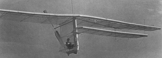 Opposite-action wing warp was one of the final keys to success. The drag of the inner wing (due to its increased angle of attack) swings that wing back, but also adds just enough lift to keep it from dropping. The result – a perfect turn. The pilot just clicks a lever into the notch and the wings are held in a twist for a turn with no other action necessary until the ship is straightened. Then he lifts the lever into neutral and goes his way. The Condor can turn about in only 180 feet. The wings were slightly swept back to aid stability, and the foreplane could be banked and its angle of incidence in¬creased to start a turn, with the innermost wing warped to provide additional lift and thus balance the turn and prevent that damaging slip into the ground which had wrecked previous man powered aircraft.