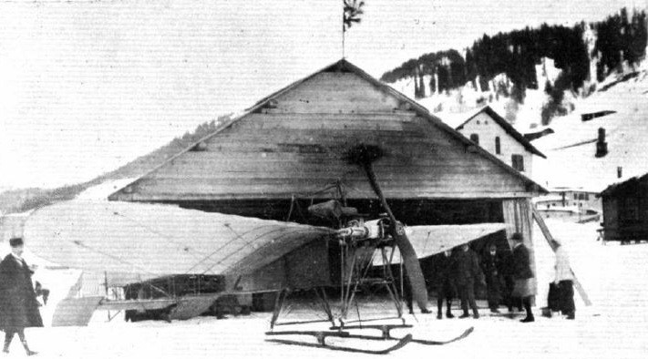 In December 1911 René Grandjean was invited at Davos to fly and here he got the idea to build a ski undercarriage. On 2 February 1912 he made the first take off and landing on skis in Switzerland. His self-built Blériot-like plane was powered by an opposed four-cylinder Oerlikon engine.