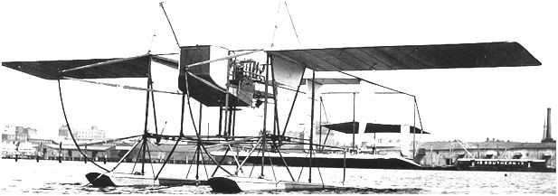 Built in the USA, R. R. Grant’s Aerostable hydroplane of 1913 featured a device whereby the angle of incidence could be changed while in flight. The operator turned a small wheel when changing or adjusting for the proper angle. The wing framework was built of white ash and steel tubing covered with Goodrich alumina cloth. The floats were of the catamaran type, each two ft wide by 21 ft long. Each pontoon was divided into five watertight compartments.