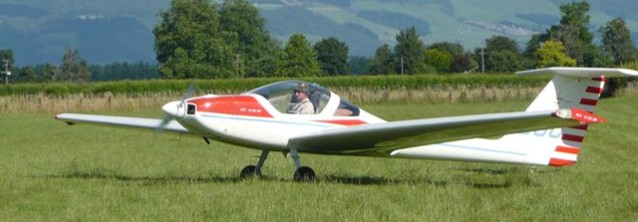 The glassfibre monocoque fuselage has frames and longerons, while the low wing has a glassfibre roving main spar and a glassfibre/epoxy resin sandwich skin; there are aluminium air brakes in the upper wing surfaces. The fixed undercarriage has Scheibe hydraulic brakes on the spatted main wheels, and the tailwheel is steerable. The pilots sit under a one-piece forward-opening canopy and, after some flight testing, this was fitted with a central frame, while changes made to the undercarriage included moving the main wheels further back so as to unload the tailwheel, the main wheel struts being of steel. Wing span was increased from the original 15m (49ft 2.5in) to 54ft, the empty weight was increased and the motor cowling and wing roots were aerodynamically refined.